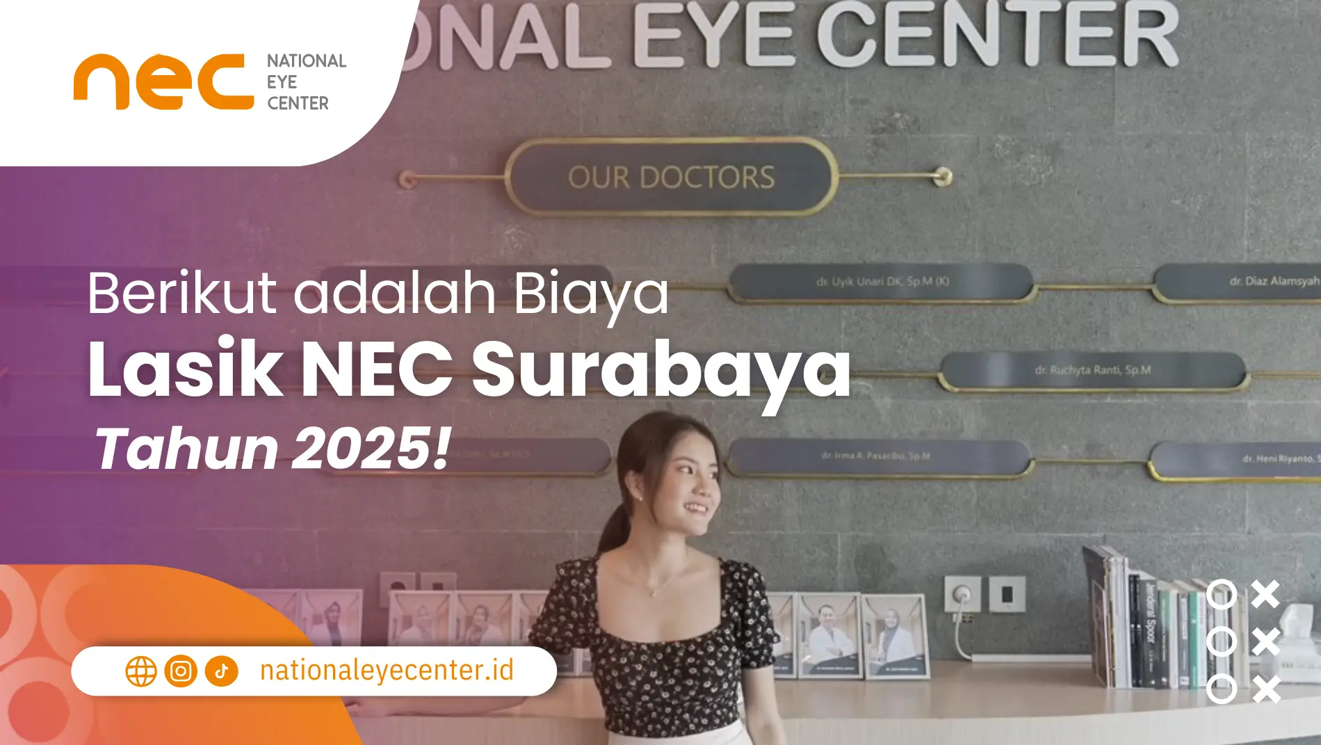 Terdapat peribahasa “Tak Kenal Maka Tak Sayang”, yuk kenali National Eye Center terlebih dahulu. NEC merupakan salah satu pusat lasik Surabaya yang telah melayani ribuan pasien di seluruh wilayah Indonesia. NEC juga menjadi pelopor pusat lasik yang menerapkan metode presbyond bagi Anda yang memiliki mata tua!. Semua alat yang digunakan menggunakan teknologi dari Jerman sehingga Anda tidak perlu takut apabila melakukan Lasik Mata di NEC Surabaya. Namun sebelum, Anda memutuskan untuk menjalani prosedur Lasik di NEC Surabaya, berikut merupakan gambaran mengenai biaya LASIK, Metode nya dan manfaat dari Lasik!