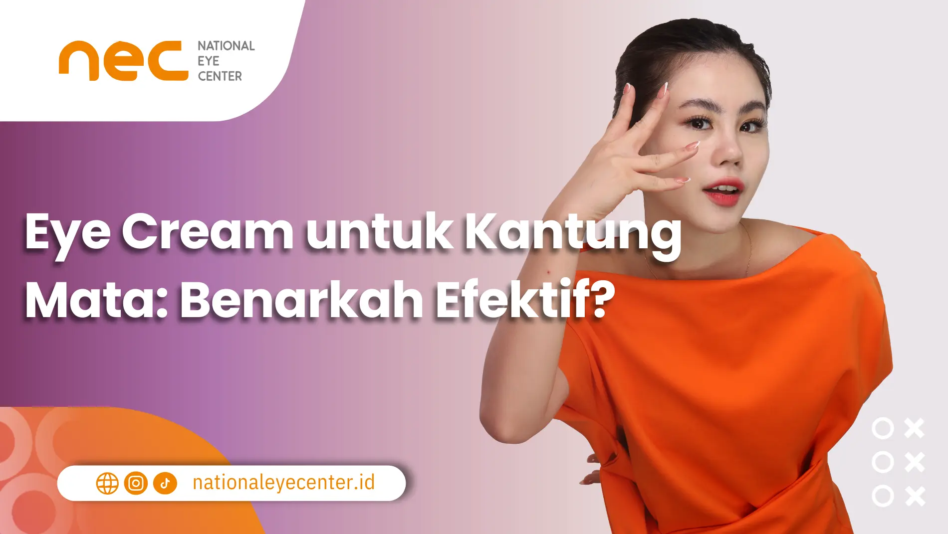 Eye cream memang bisa jadi solusi praktis buat mengatasi kantung mata, tapi seperti yang sudah dibahas sebelumnya, hasilnya belum tentu memuaskan semua orang. Kalau ingin hasil yang lebih permanen, prosedur medis mungkin perlu dipertimbangkan. Di National Eye Center (NEC), Anda bisa mendapatkan perawatan eyesthetic sekaligus berbagai tindakan lain untuk kesehatan mata, seperti perawatan katarak dan mata minus.